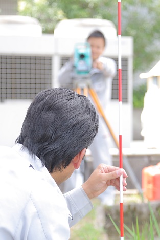 - 境界確定測量現地で測量したデータをもとに隣接地所有者との立会いを行い、土地の境界をはっきりと確定させる測量です。